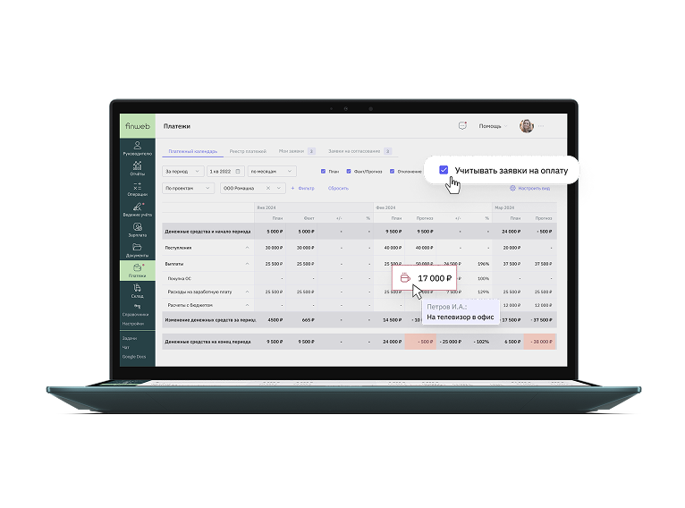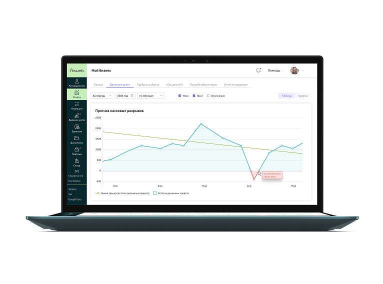 Планируйте потоки с помощью платежного календаря, а система покажет если есть риски разрыва.